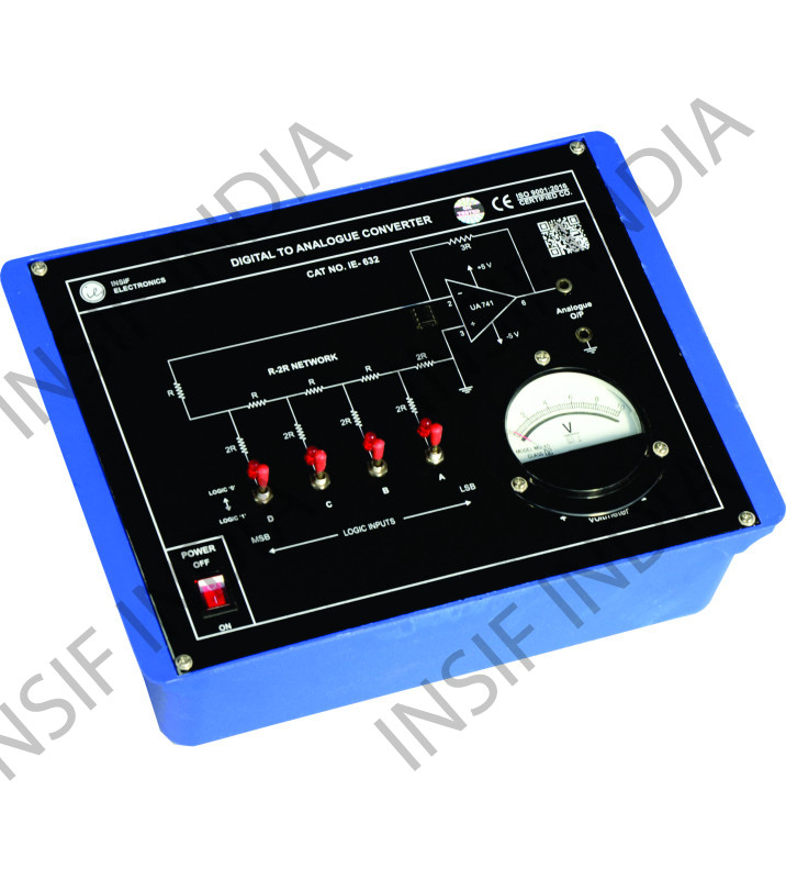 Experimental Training Board has been designed specifically to study of  Digital to Analog  Converter 4 Bit. The Trainer Kit consists of on board Logic Input switches along with input indicator LED's. The board is absolutely self contained and requires no other apparatus.