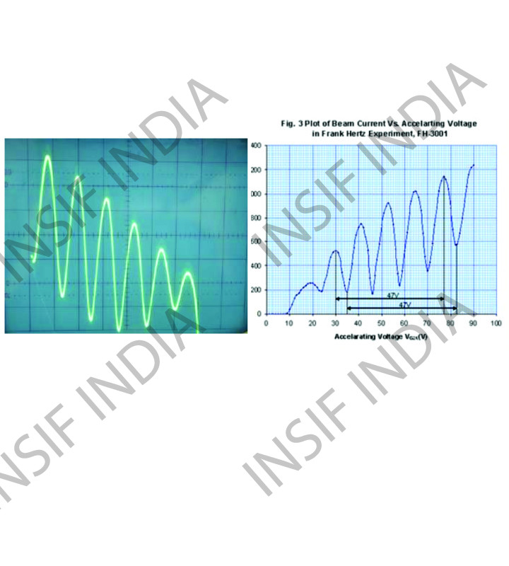 The Frank-Hertz tube in this instrument is a tetrode filled with the vapour of the experimental substance. Fig.1 indicates the basic scheme of experiment. The electrons emitted by filament can be accelerated by the potential VGK2 between the cathode and the grid G2 . The grid G, helps in minimising space charge effects.